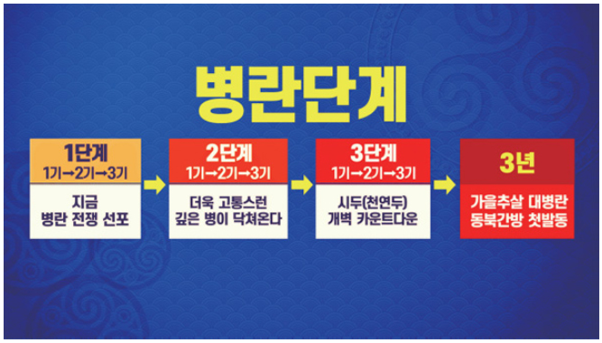 3년 전에 우리 상제님이 이런 말씀을 하셨어요. ‘지금 왜 병란이 시작이 됐는지, 왜 병란이 일어나는지 한번 곰곰이 생각해 봐라.’ 그런 각성이 필요하다는 것입니다. 앞으로 병란의 대세는 어떻게 될까요?